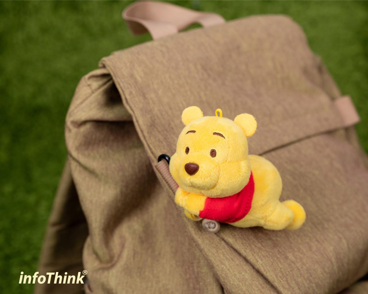 • 頭頂鉤環設計,搭配自己的掛繩,可固定在包包上一起出門。