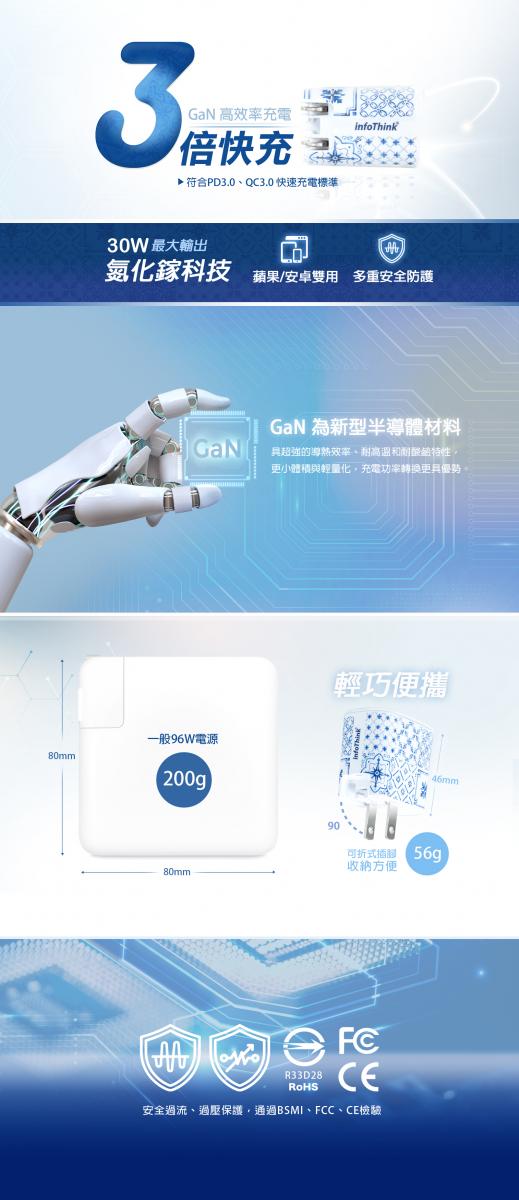 • 符合PD3.0、QC3.0 快速充電標準
