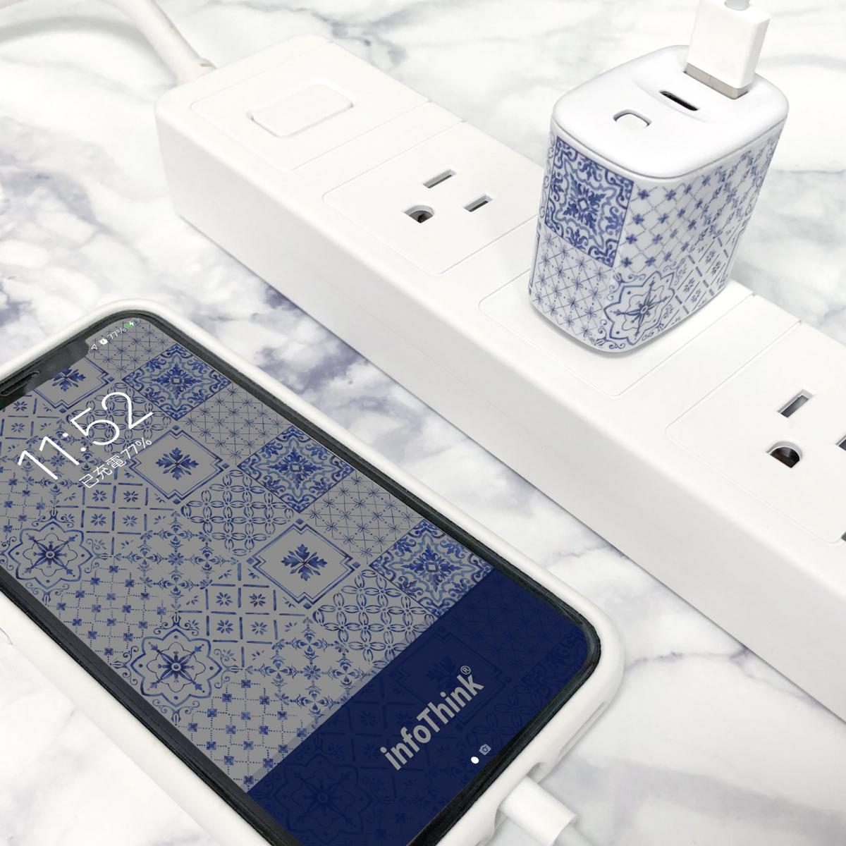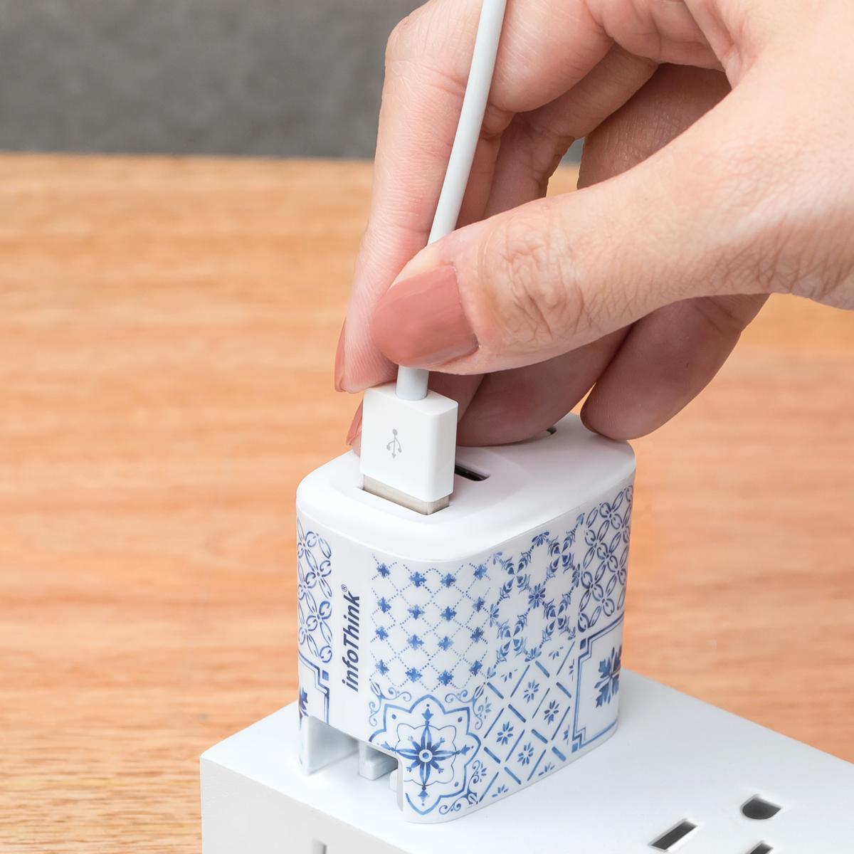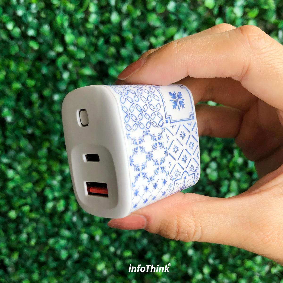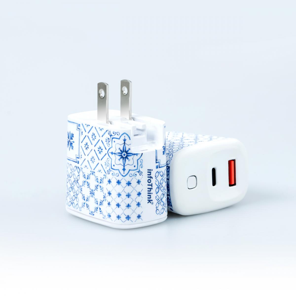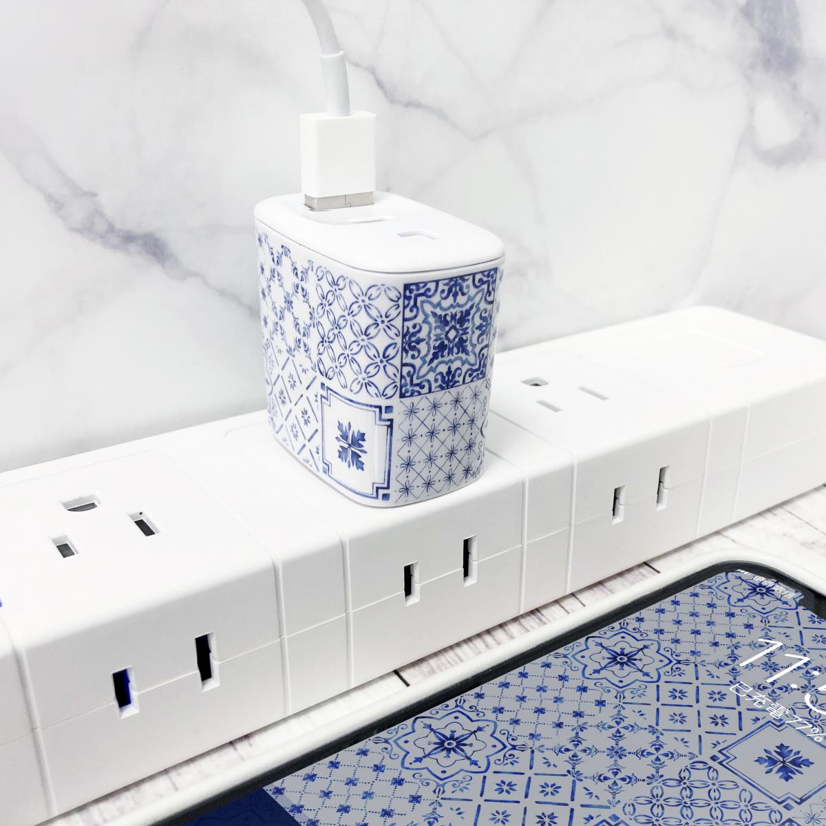 • 精緻青瓷花磚圖案,迷你輕巧快速充電器